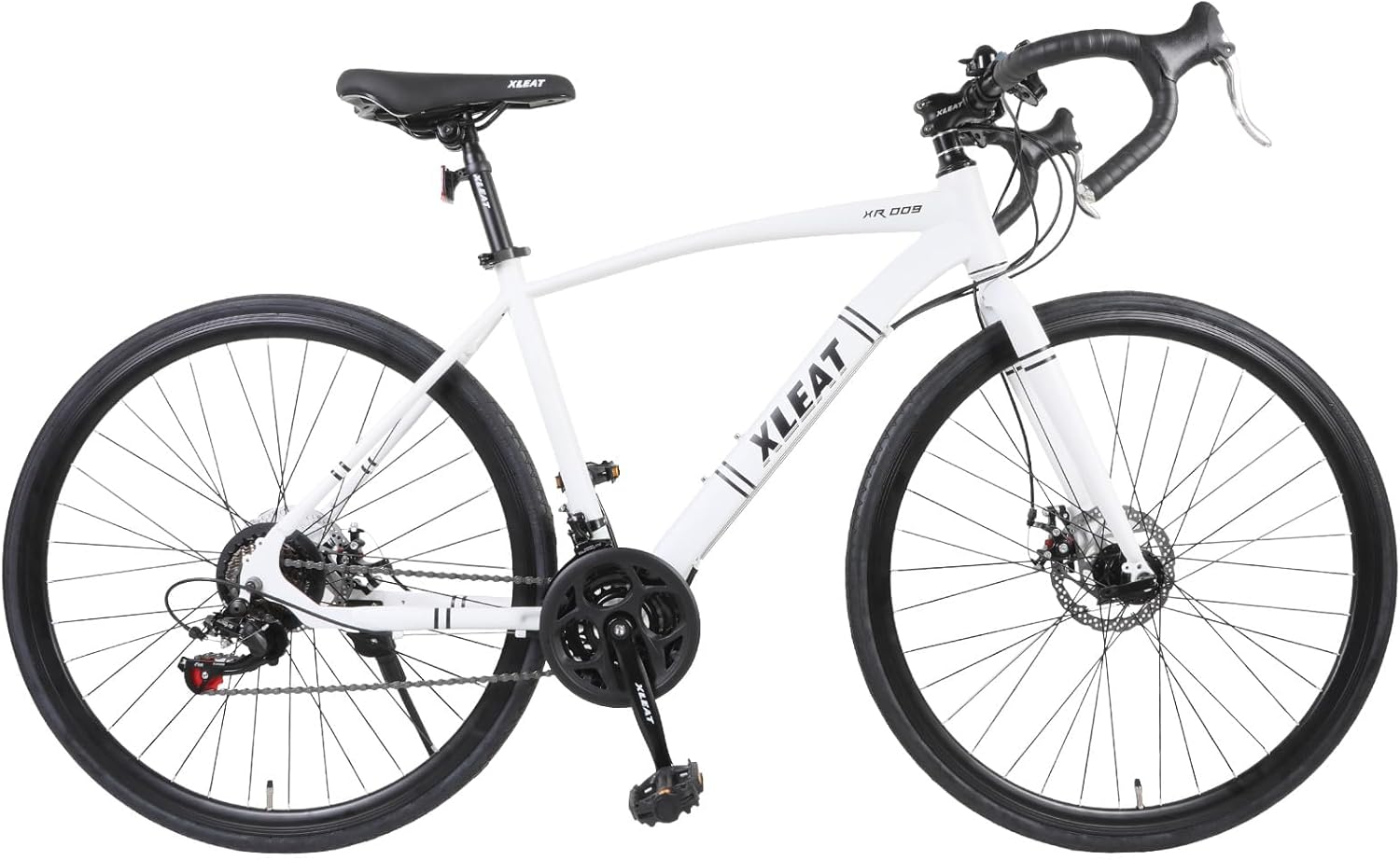 価格面ではXR-009の約22,800円は有名ブランドのエントリーモデルの半額以下で購入できます。変速段数の21段は同価格帯では標準的あるいはやや多い部類に入り、ディスクブレーキの搭載は同価格帯では大きなアドバンテージです。同価格帯のロードバイクの多くがVブレーキやキャリパーブレーキを採用しているため、雨天時の制動力ではXR-009が優れています。